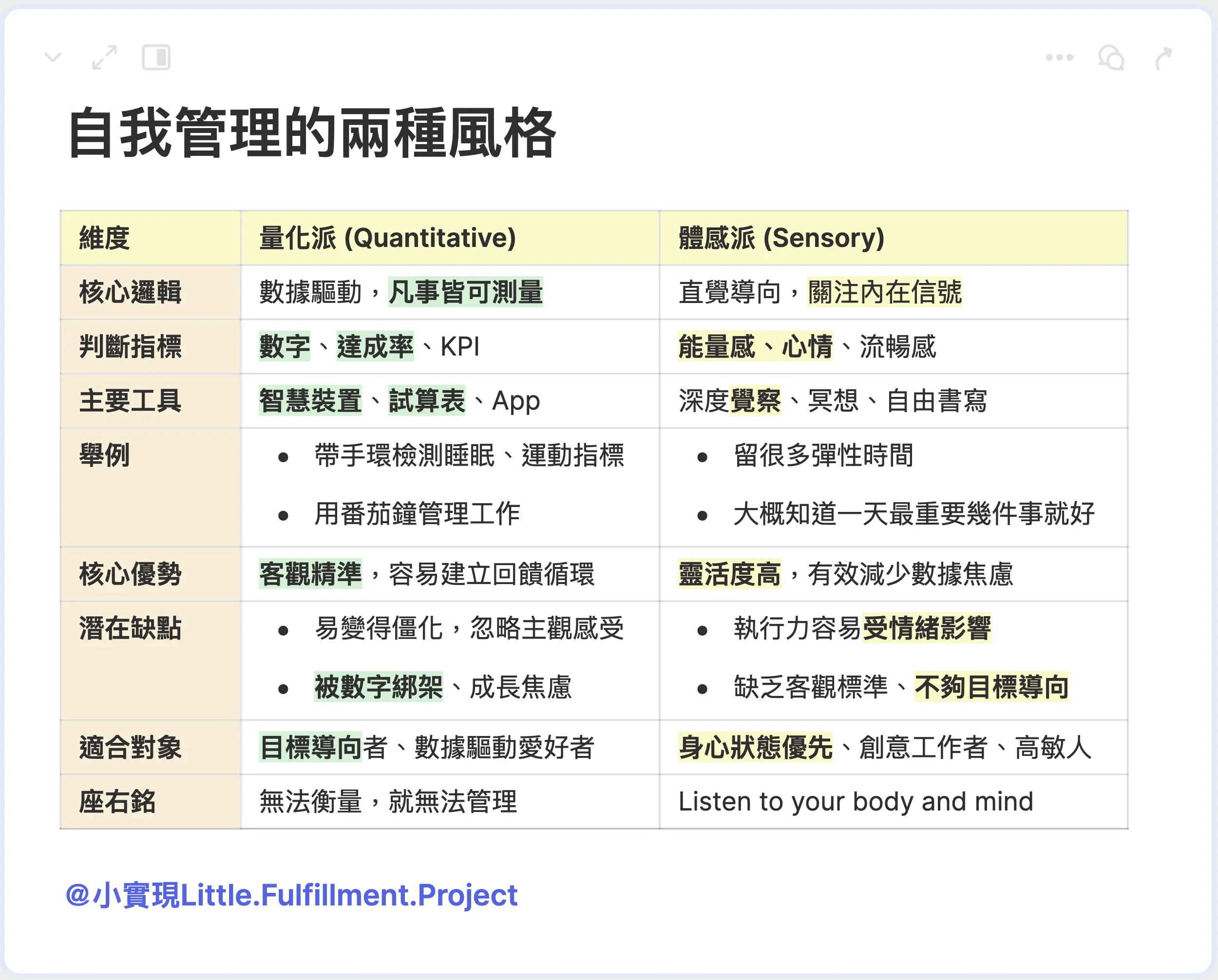 在自我管理的世界裡,我大致上把實踐者分為「量化派」與「體感派」。